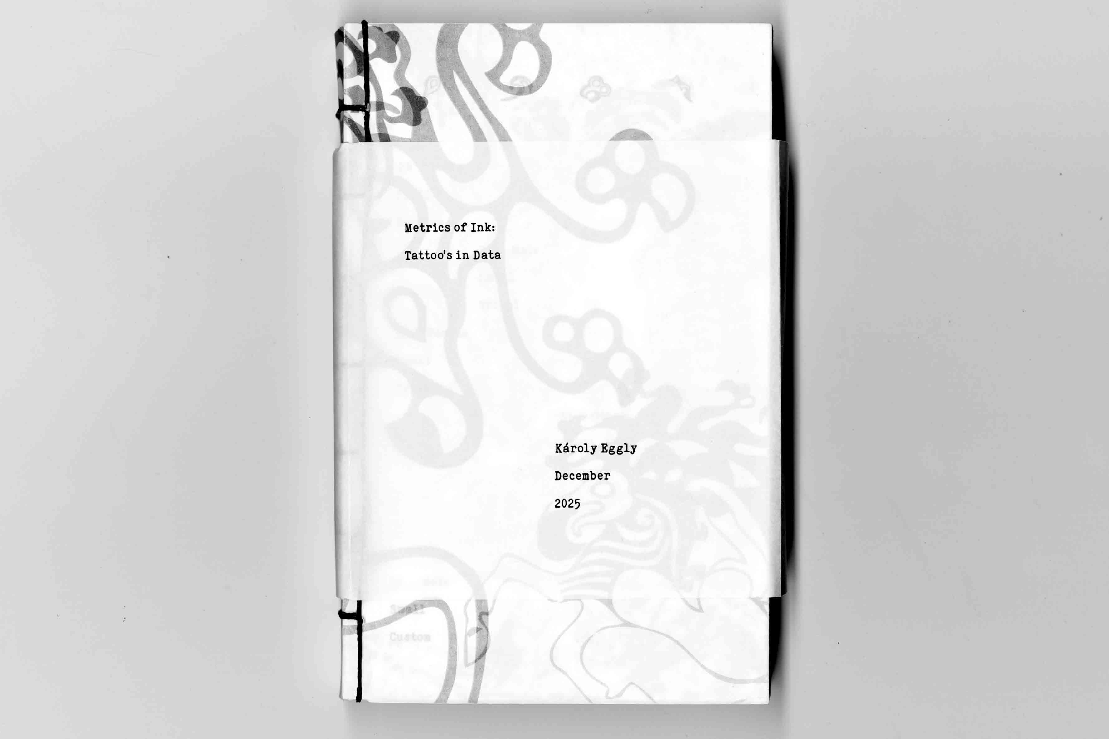 Printed on milky 60g paper, the scan of the ancient tattoo glances through.